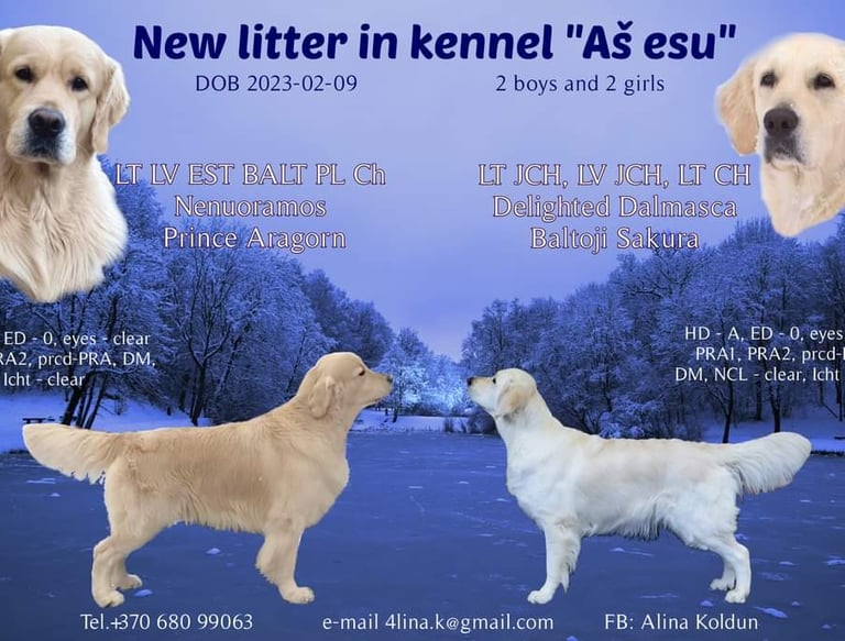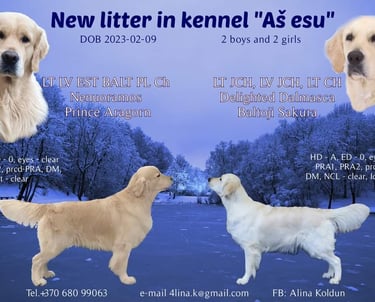 Šaltą vasario vakarą mūsų veislyne gimė pirmoji Majos šuniukų vada. Vaikai užaugo ir su gegužės saulės spinduliais iškeliavo į naujus namus. Dabar jie džiugina savo šeimas ir dalijasi šiluma bei džiaugsmu, o kartais kailiu ir išdaigomis :)